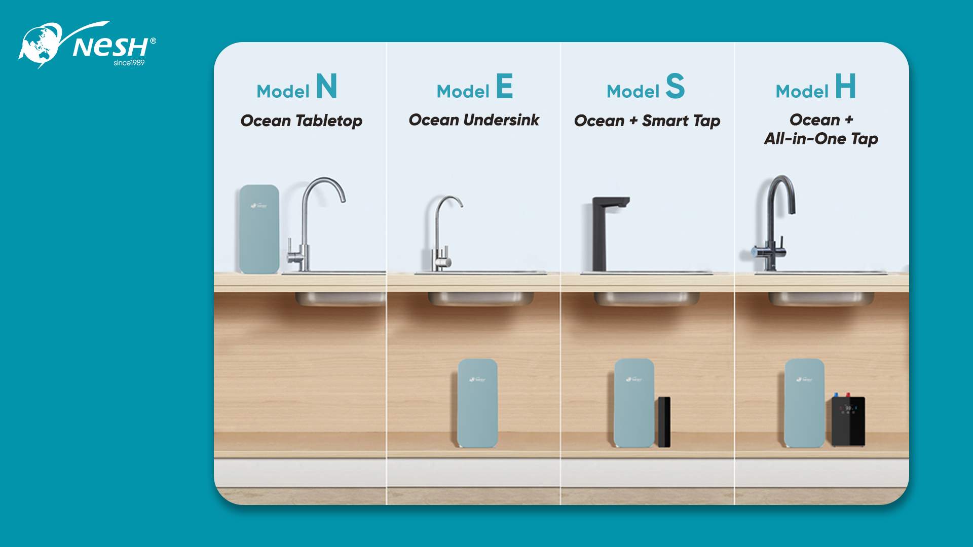 Whether your kitchen features an L-shaped, single-line, U-shaped or open layout, —NESH Ocean Water Filter has the right installation solution for you. Simply select the option that aligns with your needs and budget. It will enhance both the aesthetic appeal and functionality of your kitchen.