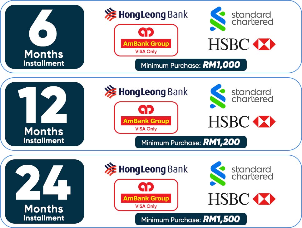 Enjoy 0% interest installment plans up to 36 months with participating banks. Pay online or in-store with flexible options. Minimum purchase applies.