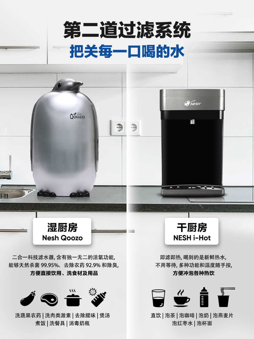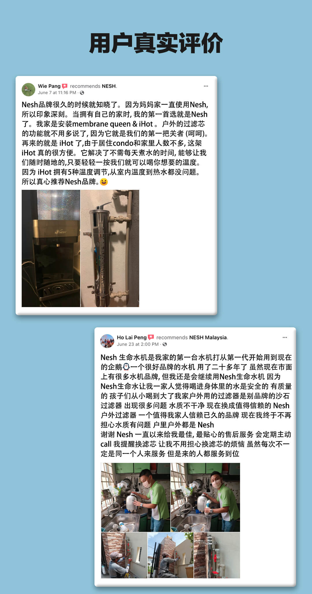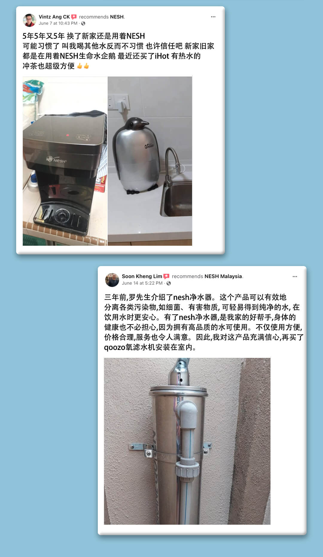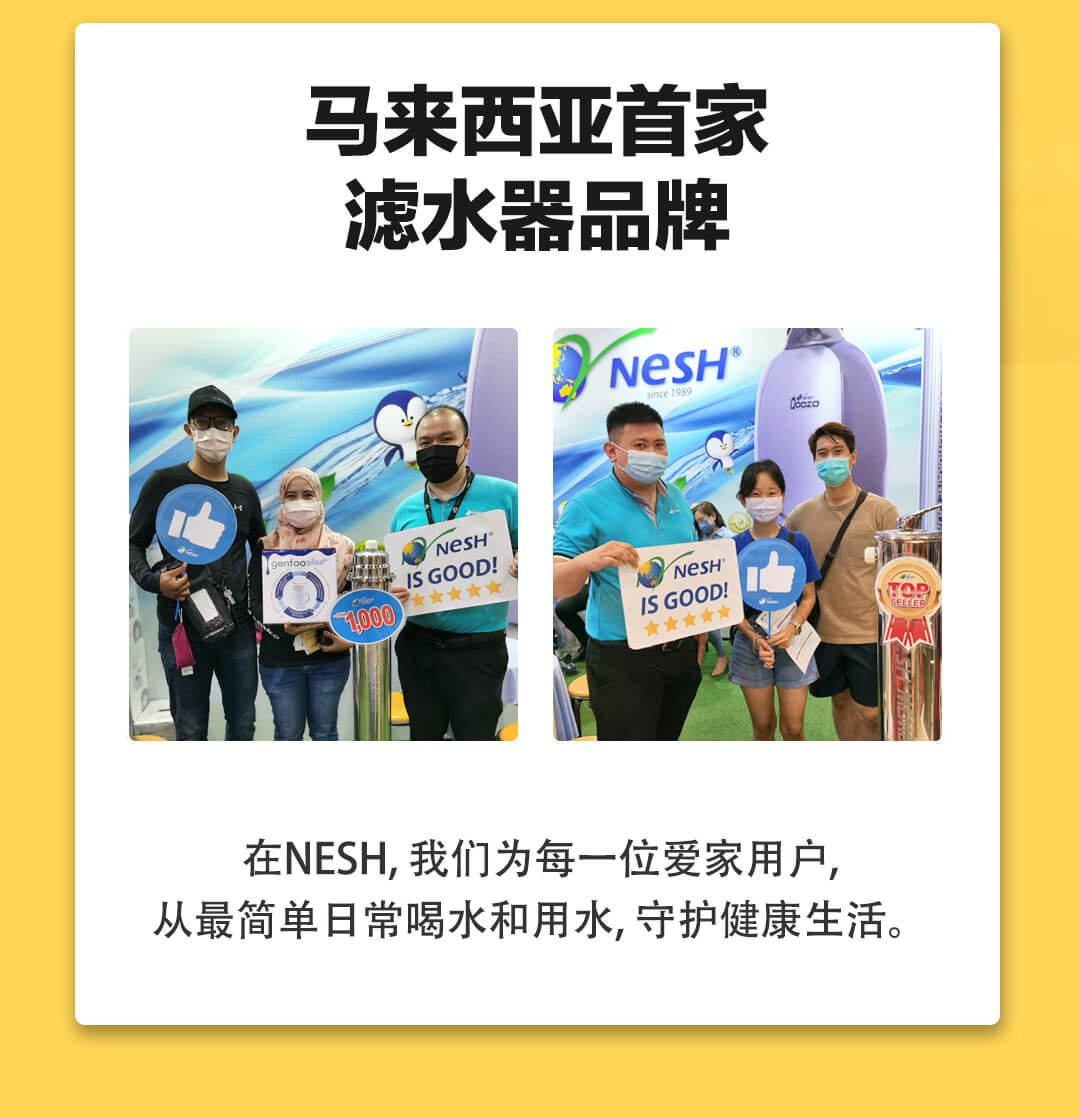 Local and overseas lab tests showed that Nesh Life Water Filtration System is able to filter 99.95% of bacteria and chemical residues in the tap water.