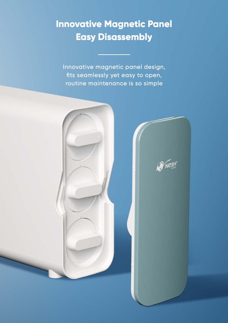 NESH Life Water is the synthesis of technologies derived from Japan, the United States of America and United Kingdom. This award-winning technology contains 3 filter cartridges that generate pure filtered water directly to your tap with 4 key remarkable features: to cleanse, vitalise, sterilise andÂ