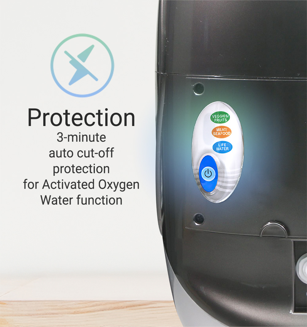 The presence of Ozone in the Activated Oxygen Water removes instantaneously bacteria and chemical residues, making your food safe to consume.