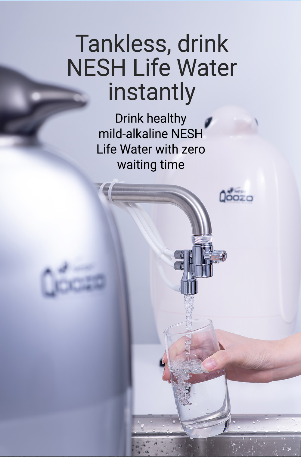 NESH Life Water is the synthesis of technologies derived from Japan, the United States of America and United Kingdom. This award-winning technology contains 3 filter cartridges that generate pure filtered water directly to your tap with 4 key remarkable features: to cleanse, vitalise, sterilise andÂ