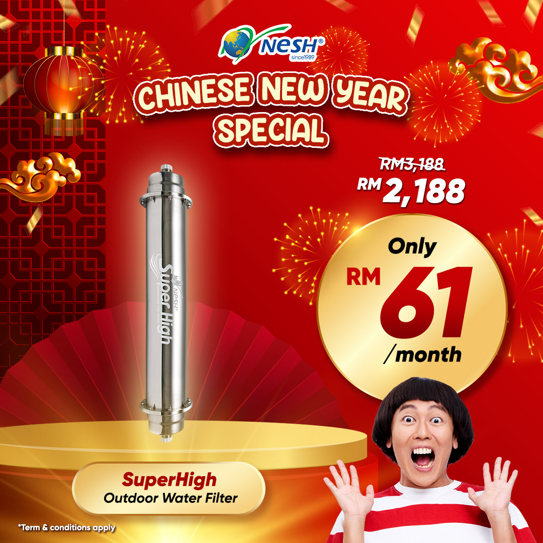 Nesh Membrane is designed in accordance to Malaysia water condition, using Germany Hollow Fiber technology. Its density is up to 0.01 Microns, which is 10,000 times thinner than our hair to filter soil, rust and other materials including bacteria with size larger than 0.01 Microns. However the natural minerals are remained in the water.