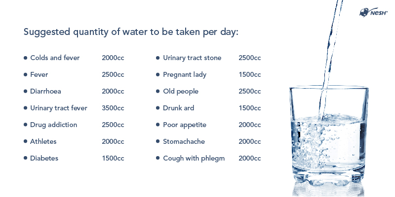 Fever, sore throat, vomiting and diarrhea are signs of dehydration. Drinking more water will help regulate the body temperature better and prevent the symptoms from getting worse. It is recommended to drink 2 to 3 litres of water per day when you have these symptoms.